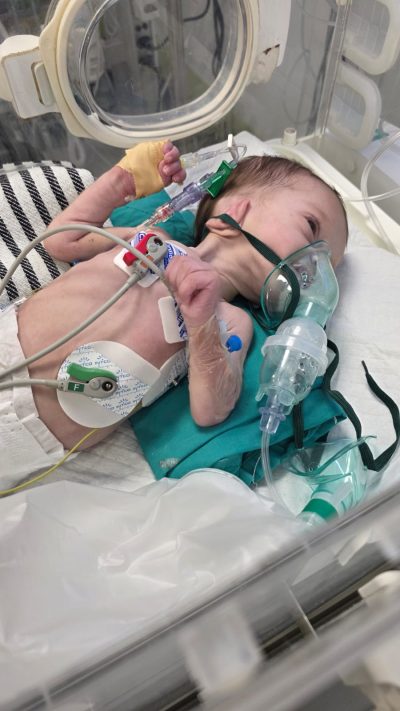 At the time of her passing at 5 months old, Alma weighed only 5 pounds. She suffered from congenital middle lobe emphysema, pneumonia, interstitial lung disease, immunodeficiency, and critical malnutrition. Interstitial lung disease is a congenital defect that like traditional emphysema causes air trapping and poor oxygen exchange. However, unlike traditional emphysema, this affects one lobe of the lungs (in Alma’s case it was the middle lobe of the right lung) which could have been removed surgically, and if successful, would have resolved her primary issue. But this required evacuation for treatment abroad. She had been scheduled for evacuation on March 2nd, but due to the conflict with Iran, Gaza’s boarders were closed on February 28th. Her mother, with bags packed, sank into despair. She and her husband, Ahmad, had lost their first daughter, Wateen, to a prolonged delay of medical evacuation for the same genetic condition. Now these parents are mourning Alma and we are with them.